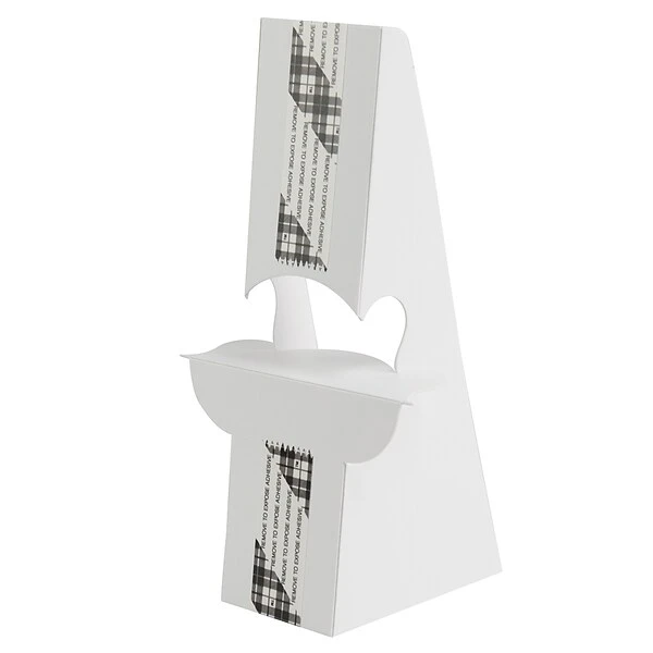 - 36 pt., 9 in tall – white SBS board – with double-wing easel, and peel & stick adhesive.