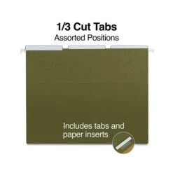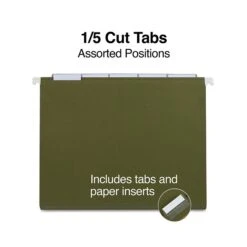 Quill Brand® 100% Recycled Hanging File Folders; 1/5-Cut, Letter Size, Green, 25/Box (7Q5215)