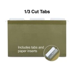 Quill Brand® 100% Recycled 3-Tab Hanging File Folders, Letter Size, Green, 25/Box (7Q5213)