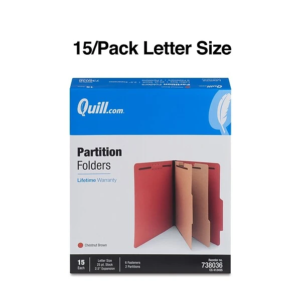 - Six 2″ capacity fasteners on covers and 1″ capacity twin prong fasteners on partitions