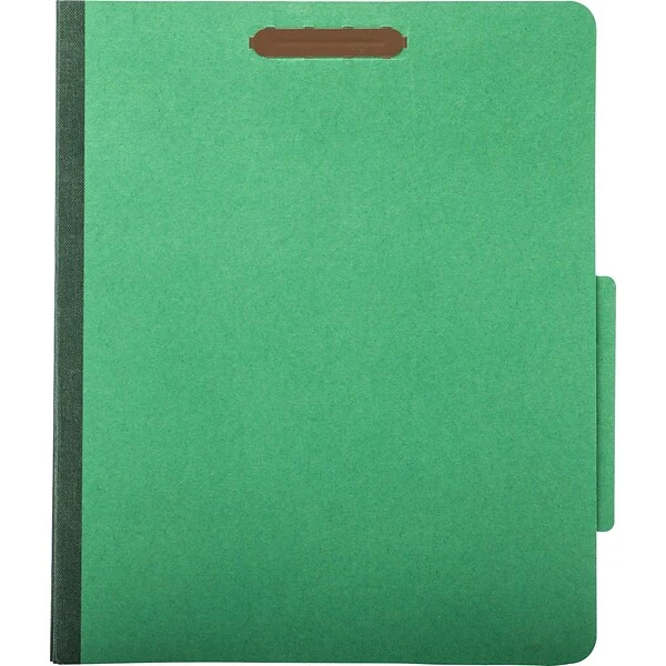 - Green 25 pt. pressboard folders with two partitions