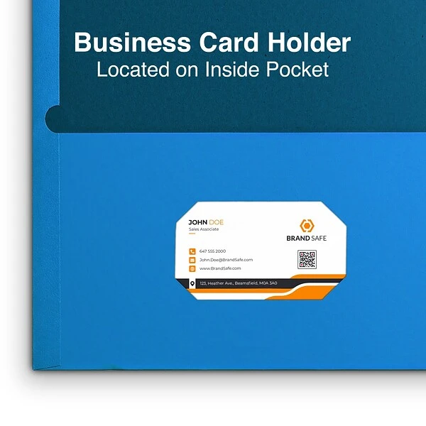 - Quill Brand® 2-pocket folders include a die-cut business card holder