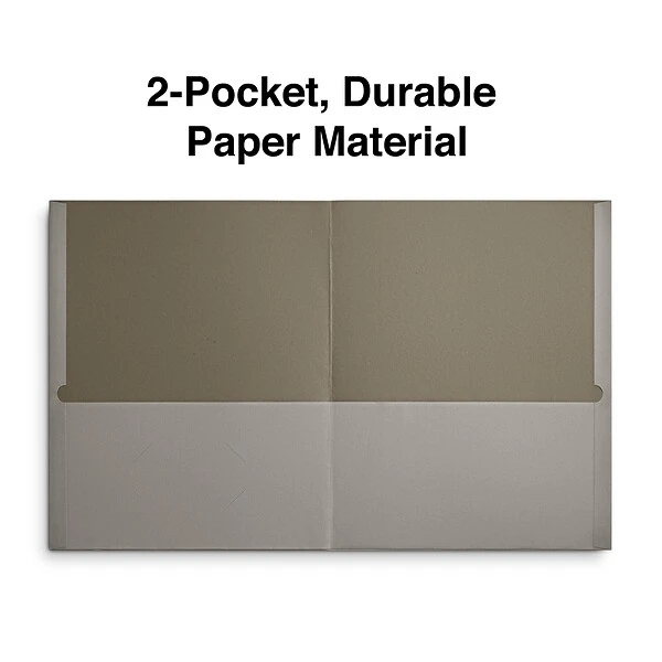 - Quill Brand® 2-pocket folders include a die-cut business card holder