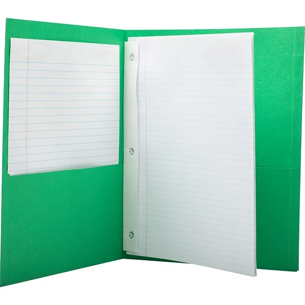 Secure paperwork safely inside this Quill Brand two-pocket with fastener folders. Each folder holds up to 100 sheets of paper under the fasteners.