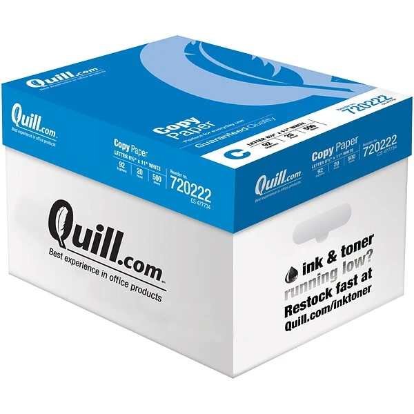 Quill Brand copy paper is designed to stock your office copier with the added benefit of reducing paper jams. Each order comes with one ream of 500 sheets of letter-sized 92 bright white paper that allows you to see your printed work more clearly.