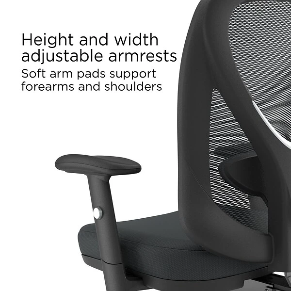 Sit back and tackle all your work projects in style with this sleek Carder mesh office chair. The modern design offers a quick update for your office, while the black color coordinates with a range of office decor styles. A mesh back allows air to circulate while you work, helping to keep you cooler throughout long workdays. The molded back features a slight curve that serves as lumbar support, while the adjustable seat and arms let you find the perfect configuration for your body. Featuring carpet casters and a stable five-star base, this Carder mesh office chair rolls easily over carpeted or tile floors.