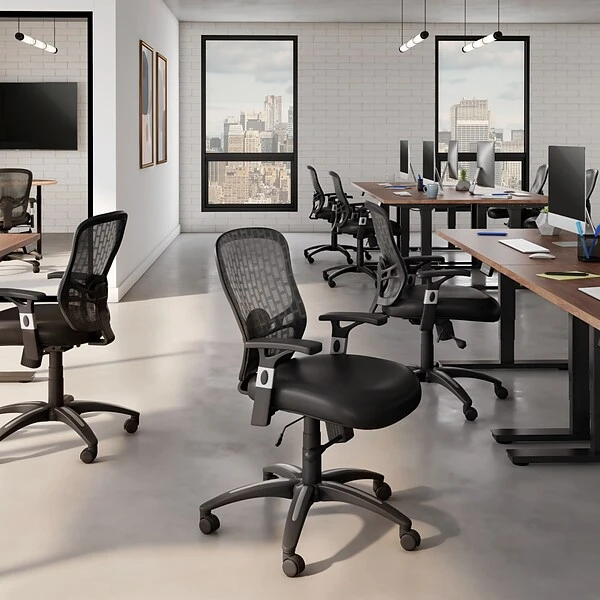 Sink into this Corvair Luxura mesh back task chair and enjoy added comfort throughout each workday. Designed with lumbar support, a pneumatic height adjustable seat, and adjustable tilt tension with tilt lock. The durable casters and nylon five-star base let you glide from computer to file cabinet and back again, making it easy to tackle everyday tasks without having to leave the comfort of this office chair. With adjustable padded arms, this black Corvair Luxura mesh back task chair is great addition to any work space.