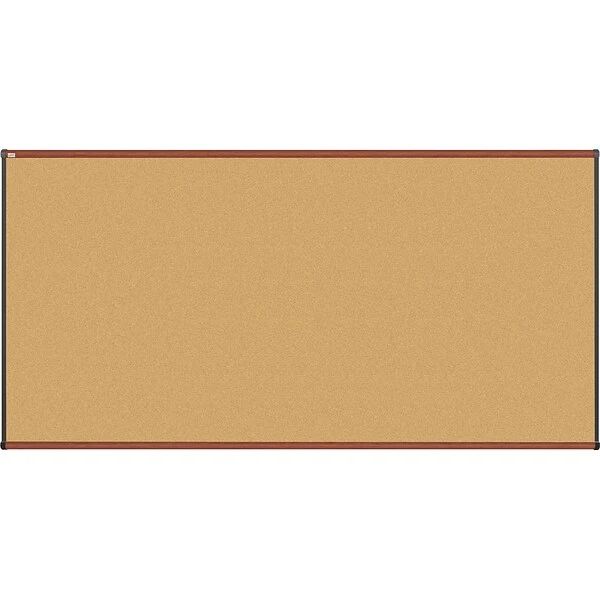 The cork bulletin board with a cherry frame features a 1/16″ recyclable cork layer which is attached to a 7/16″ layer of insulation board that offers a secure surface for tacks. This durable bulletin board measures 8′ x 4′.