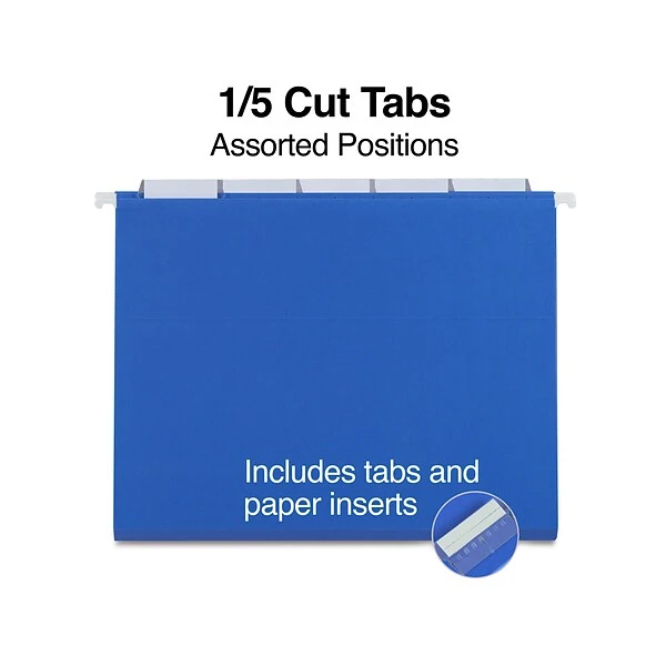 Provide your employees with the organizational tools they need with these Quill Brand colored hanging files in blue. The folders secure letter-size documents.