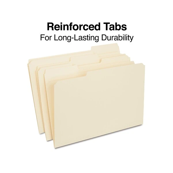 Keep legal-size paper and important documents organized using these heavy-duty manila folders from Quill. The folders have assorted tab positions so that you can easily find the folder you need.