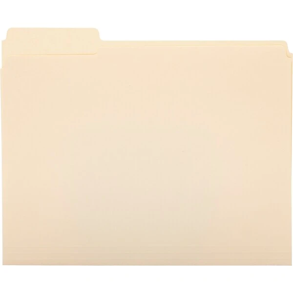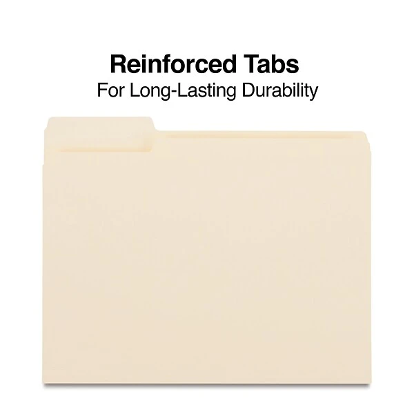 Quill standard manila file folders keep important documents safely filed away and loose papers in a single location. The tabs provide a convenient way to label the file folders for quick reference. The folders’ standard letter size means that most documents fit in them without wrinkling or bending the corners, and the medium-weight material of the folders holds up through active use.
