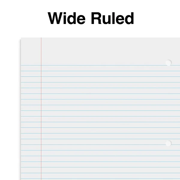 - Wide-ruled paper makes it easy to write legible notes that aren’t too cramped