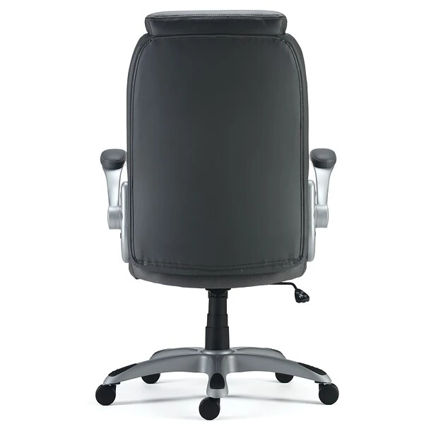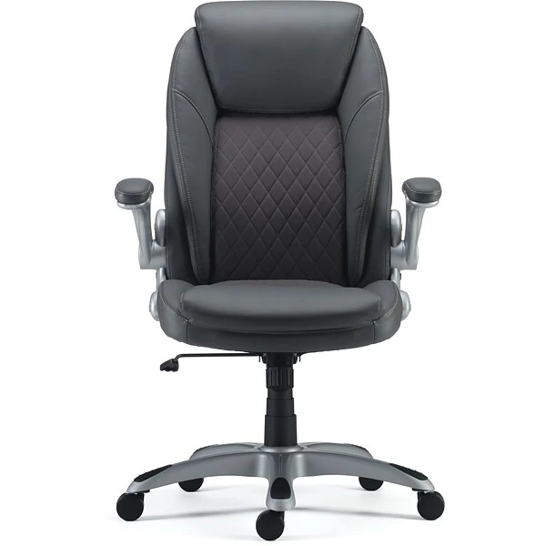 - Gray bonded leather and quilted fabric task chair for elevated comfort and style