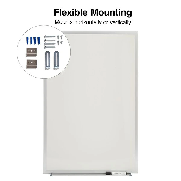 Standard melamine aluminum finish frame dry-erase whiteboards have a professional appearance along with sturdy construction. At 3 feet by 2 feet, these whiteboards are poster-sized for a medium-sized writing surface. A marker tray provides convenience, while an included marker lets you start writing as soon as you mount the board to wall. The white melamine surface lets dry-erase markers show up in vivid color. Regular cleanings help protect your investment while improving the longevity of your whiteboards.
