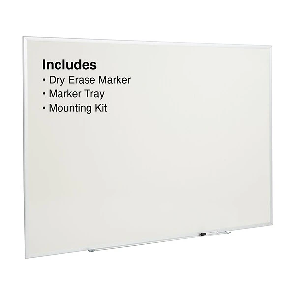 Outfit your conference room or boardroom with this standard melamine whiteboard. The generous dimensions make this board ideal for brainstorming sessions, writing out company goals and jotting down notes during meetings. A silver-tone aluminum frame delivers both durability and a hint of modern style, while the white surface offers a striking color contrast for dry-erase markers. This standard melamine whiteboard comes with a marker tray and a dry-erase marker for added convenience.