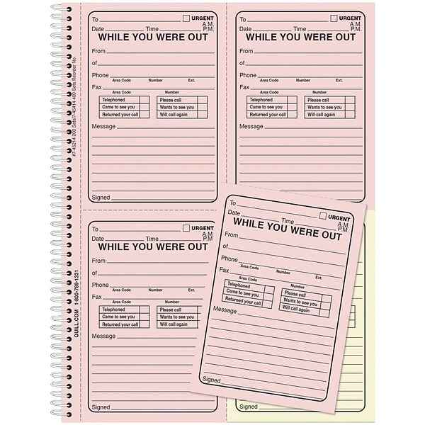Quill Brand® While You Were Out Book, 11″ X 8-1/4″, Assorted, 400 Forms/Book (745414)