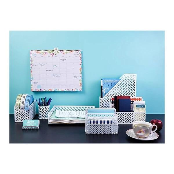 Make business cards highly visible and easy to pick up by using this white business card holder. A stylish zigzag shape provides functionality and an elegant appearance. This Staples zigzag business card holder features a durable metal construction and offers plenty of open room for displaying a stack of cards, so you don’t have to refill it often.